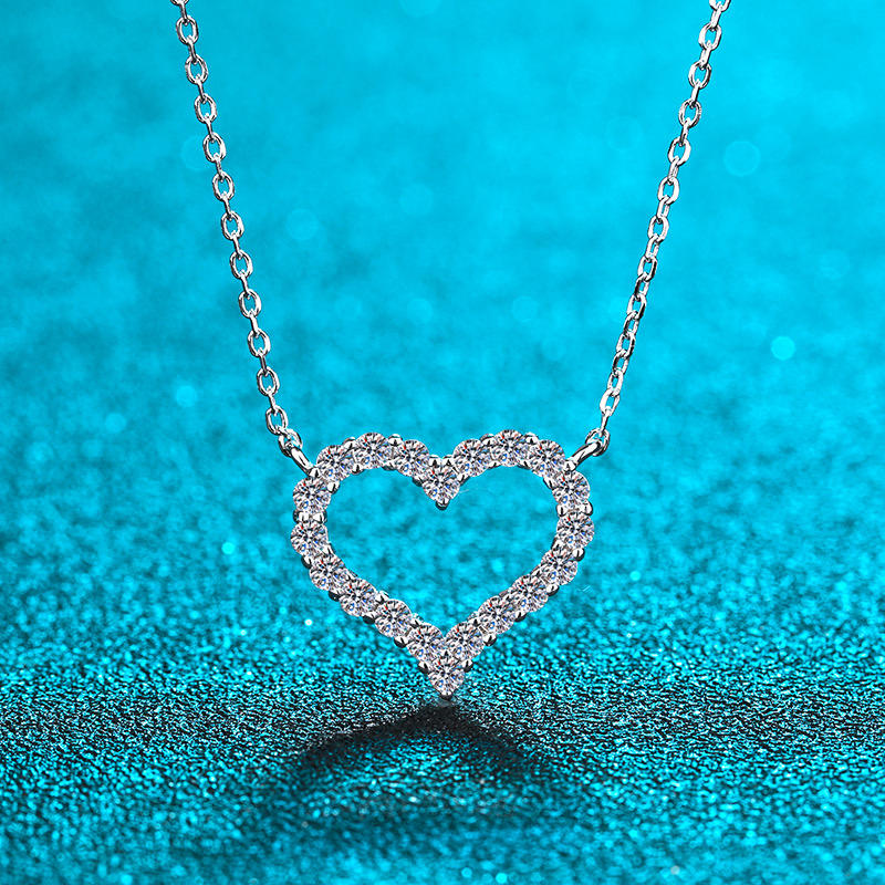 จี้เพชรโมอิสคลาสสิก925สร้อยคอเงินสเตอร์ลิงรูปหัวใจพร้อมสร้อยคอจี้เพชรโมอิสสำหรับผู้หญิง