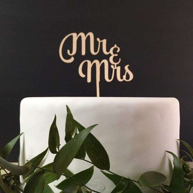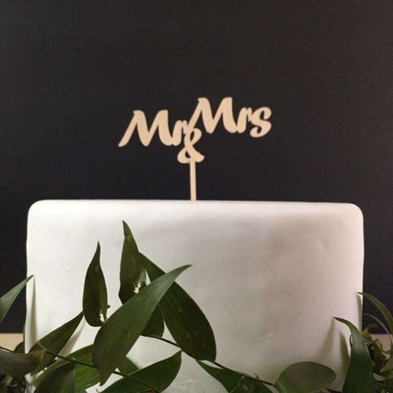 ท็อปเปอร์เค้กแต่งงานแบบคลาสสิก คุณและคุณนาย ทำจากไม้ธรรมชาติ สำหรับตกแต่งเค้กในงานแต่งงานสไตล์เรียบง่าย หรืองานฉลองครบรอบแต่งงาน