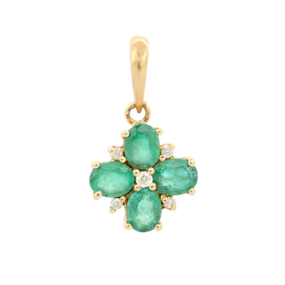 คลาสสิกธรรมชาติรูปไข่พลอยมรกตเพชรดอกไม้จี้18พันสีเหลืองทองเสน่ห์แฮนด์เมดจี้ผู้หญิงเครื่องประดับที่กำหนดเองผู้ชาย