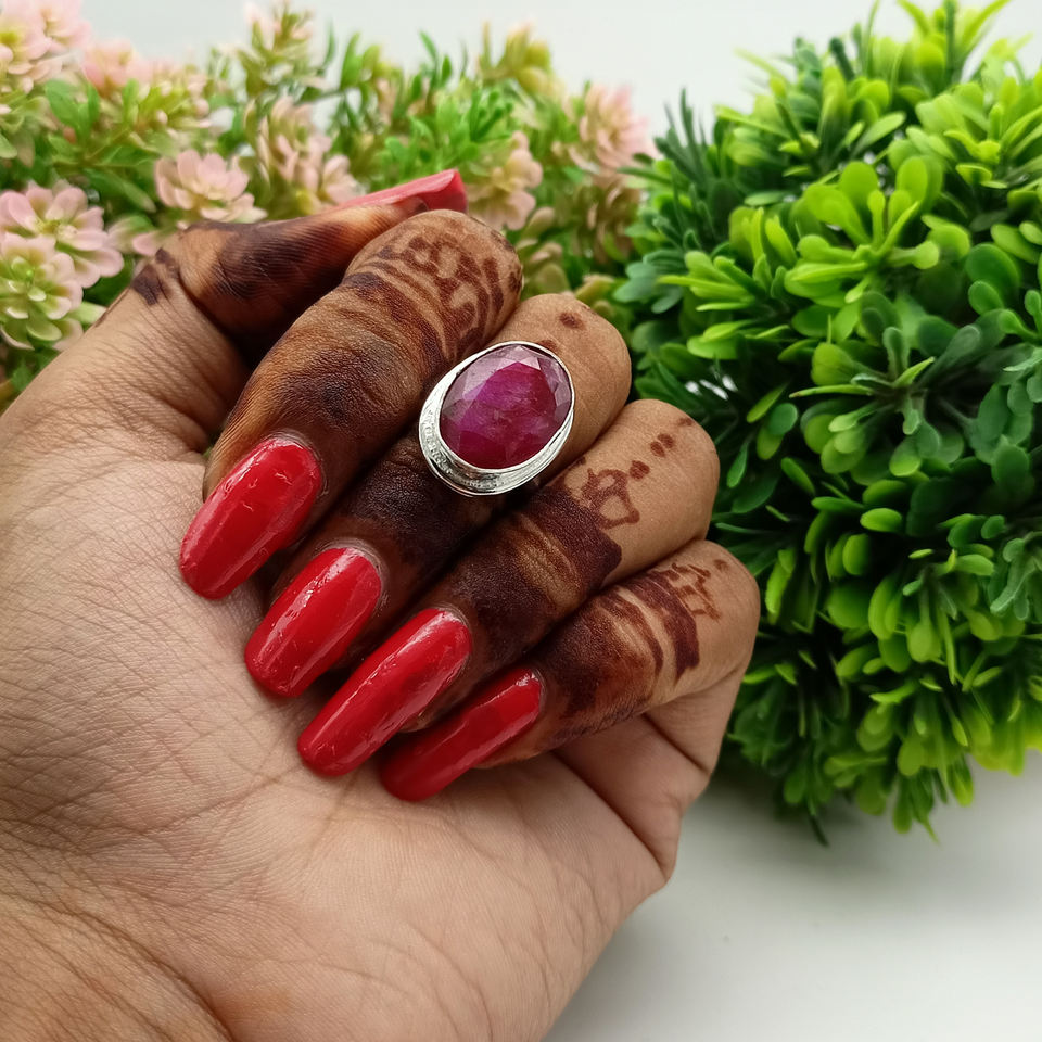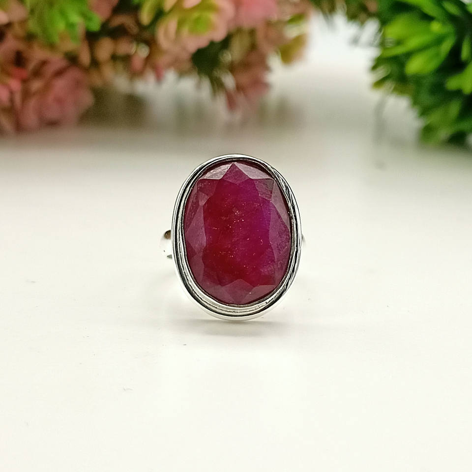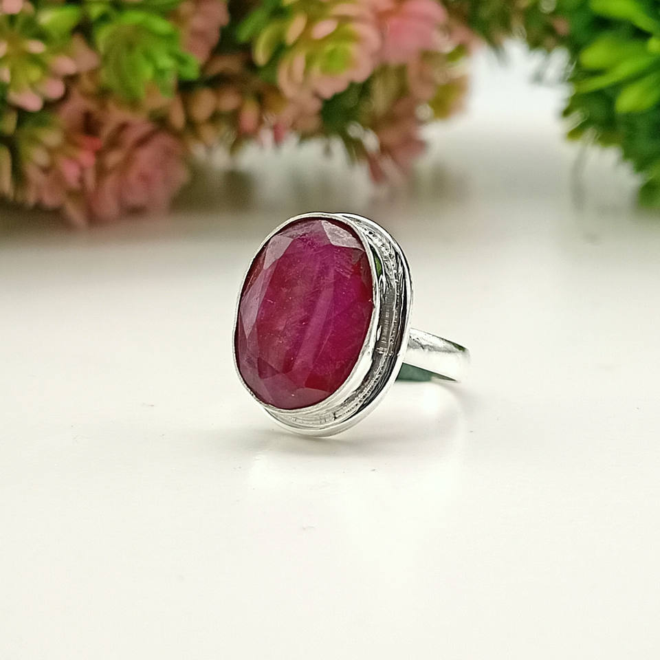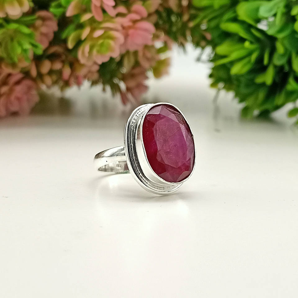 Classic Natural Pink Ruby Gemstone Ring July Birthstone 925 Sterling Silver Oval Cut Bezel Setting for Engagement Wedding