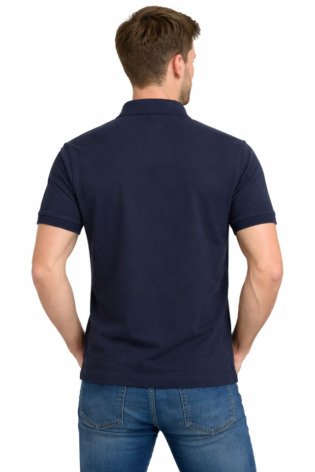 เสื้อโปโลผ้าฝ้ายพรีเมียมสีน้ำเงินกรมท่าคลาสสิกสำหรับผู้ชาย ทรงเข้ารูปอย่างมีสไตล์ เนื้อผ้านุ่มระบายอากาศดี แขนสั้น ดีไซน์คอปก