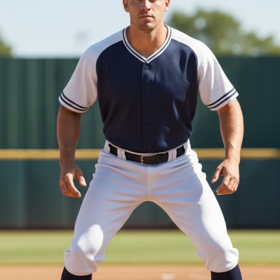 ชุดเบสบอลคลาสสิกสีกรมท่าและสีขาว เสื้อเจอร์ซีย์สีกรมท่าล้วน แขนเสื้อสีขาว พร้อมกางเกงเพอร์ฟอร์แมนซ์