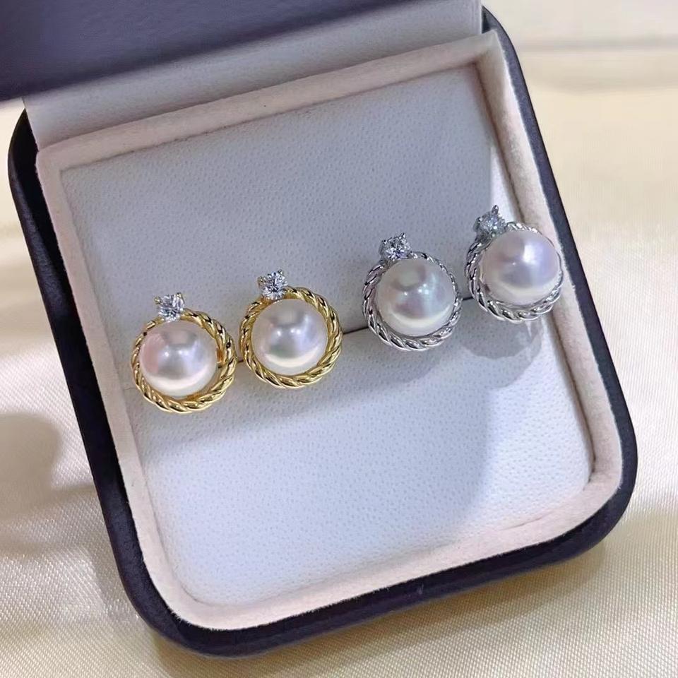 ต่างหูมุกน้ำจืดธรรมชาติ คลาสสิค นิวคลาสสิค 14-13 มม. ไร้ตำหนิ ด้านหน้าสีเงินเย็น แสงซาย อาว ไป๋ จูจี้