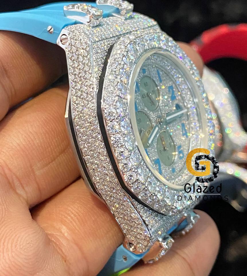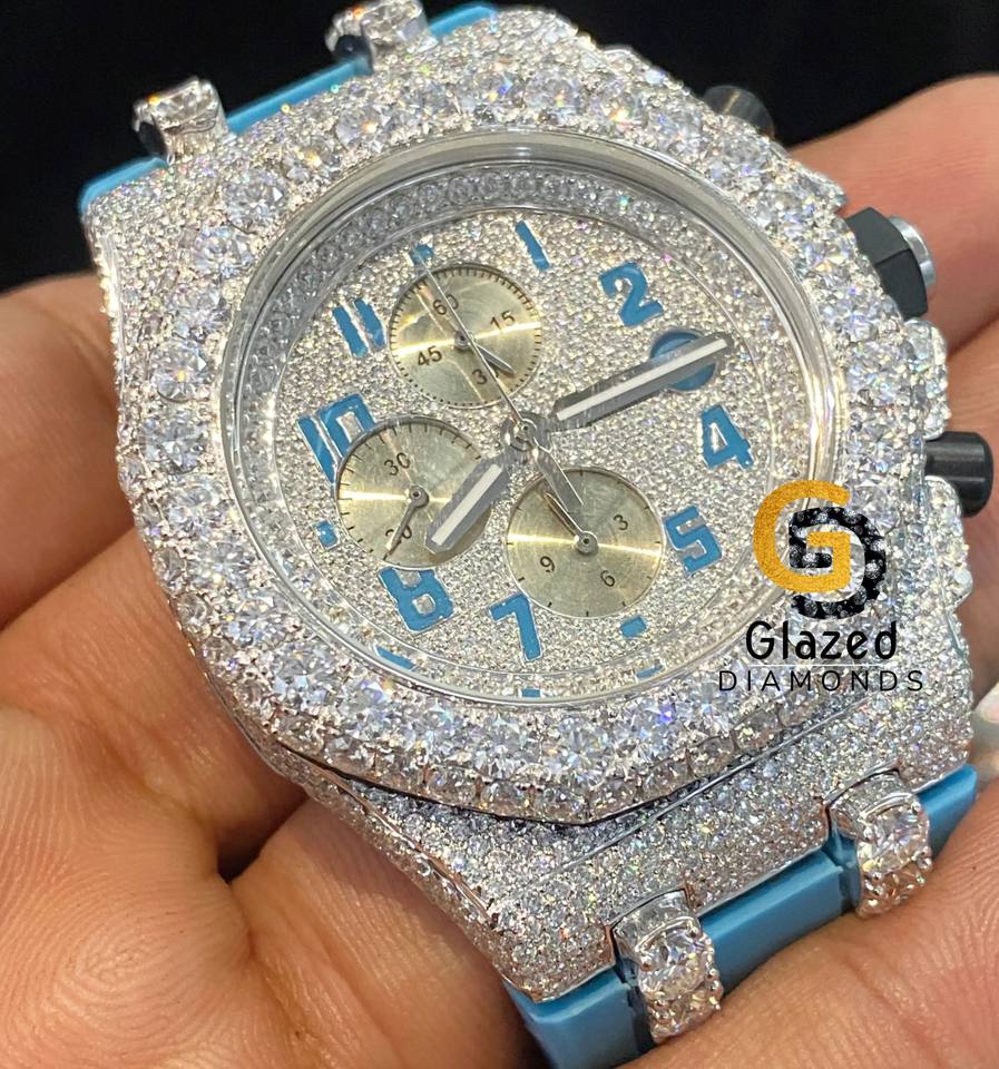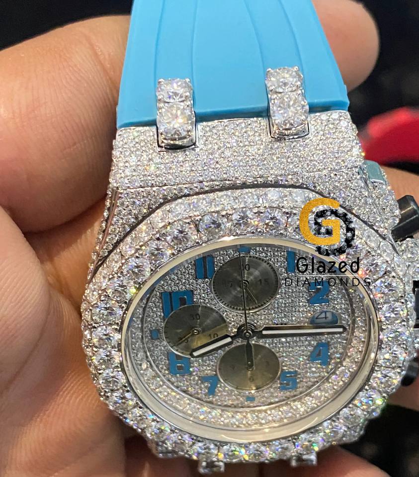 นาฬิกาโครโนกราฟสายยางประดับเพชรโมอิสซาไนต์ทรงกลมแบบคลาสสิกใหม่สำหรับผู้ชาย สวมใส่ในงานปาร์ตี้