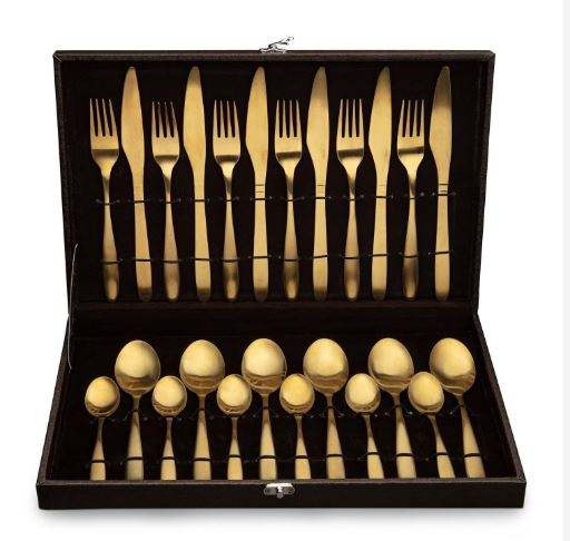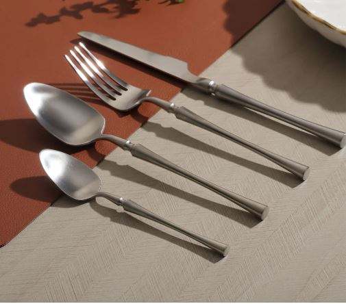 ชุดช้อนส้อมสแตนเลสสตีลสไตล์คลาสสิกเคลือบนิกเกิล ดีไซน์เรียบหรู เหมาะสำหรับงานเลี้ยง ให้ลุคที่ดูสะอาดตาและอ่อนโยน