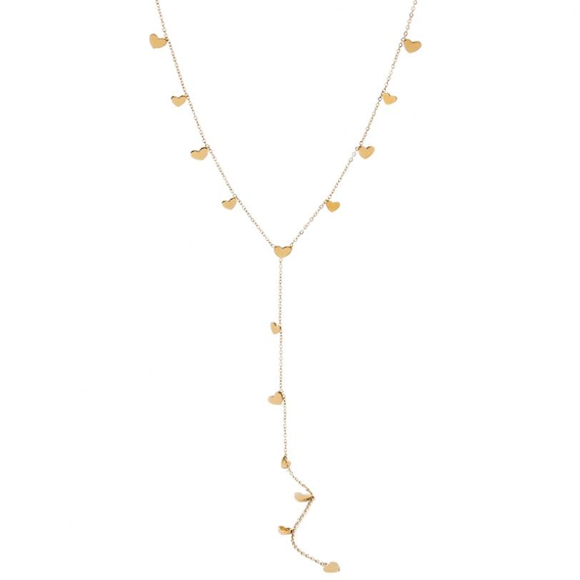 สร้อยคอจี้รูปหัวใจประดับพู่สำหรับผู้หญิง ดีไซน์คลาสสิก ไม่ลอก ไม่ดำ วัสดุสแตนเลสสตีลชุบทอง 18K