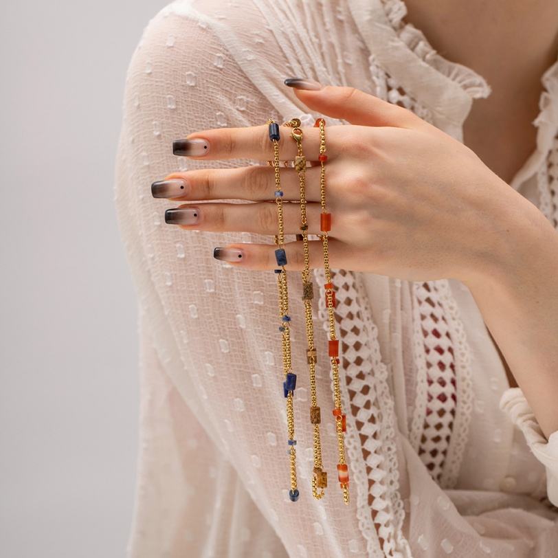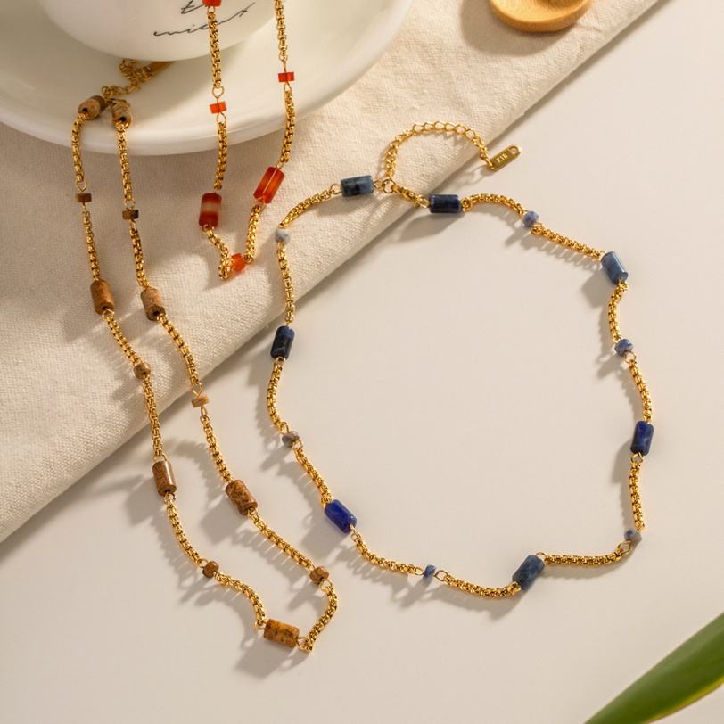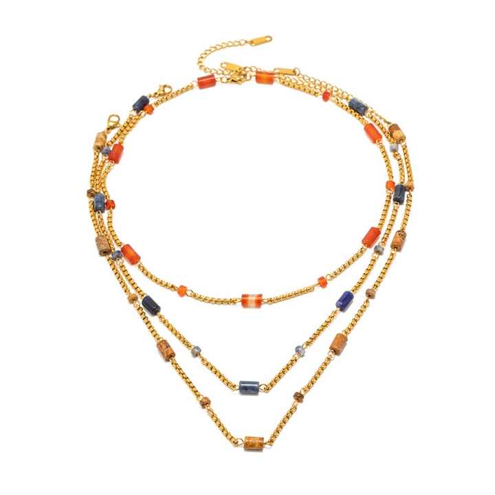สร้อยคอทองคำแท้หลายชั้น งานฝีมือประณีต ไม่ลอก ไม่ซีดจาง ประดับด้วยหินธรรมชาติ พร้อมสายสแตนเลสยาวสำหรับผู้หญิง