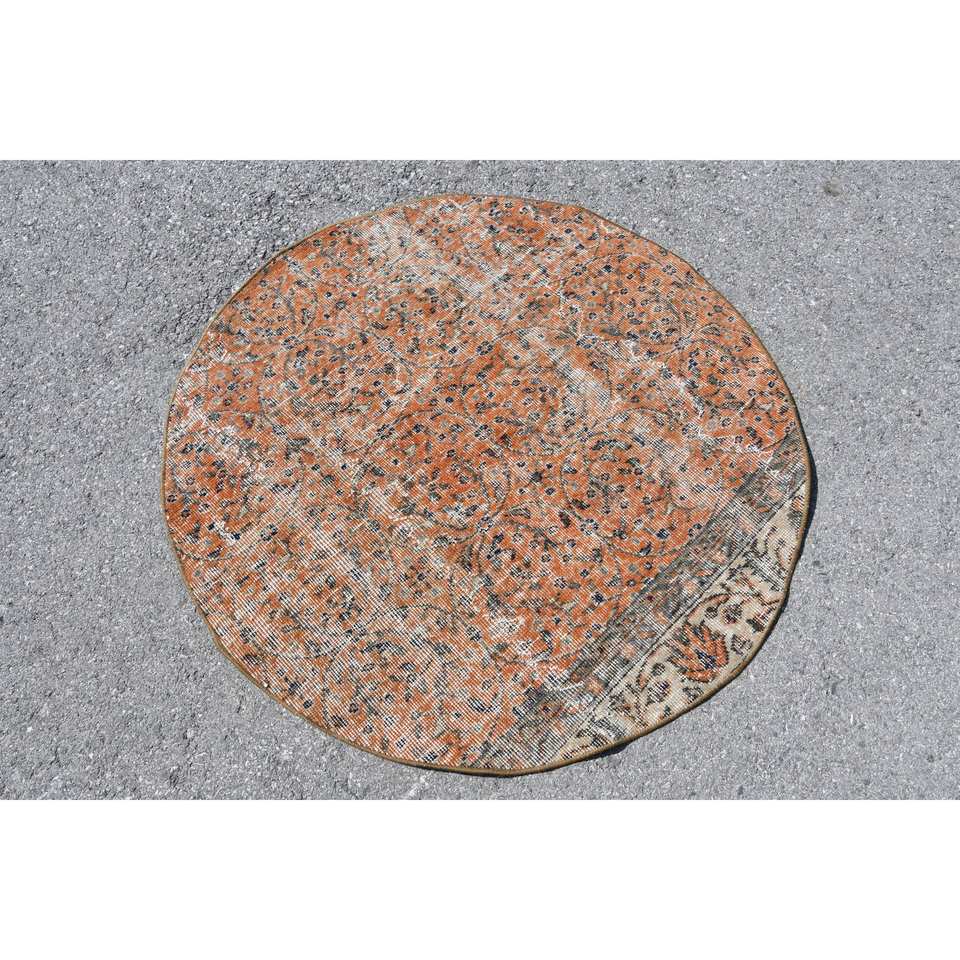พรมขนสัตว์สีเบจสีส้มคลาสสิกงานเย็บปะติดผ้าวิสโคสทำด้วยมือ3.7X3.7ฟุตเทอร์ควอตซ์ทรงสี่เหลี่ยมผืนผ้าดีไซน์โถงทางเดินสำหรับวัยรุ่นที่อาศัยอยู่