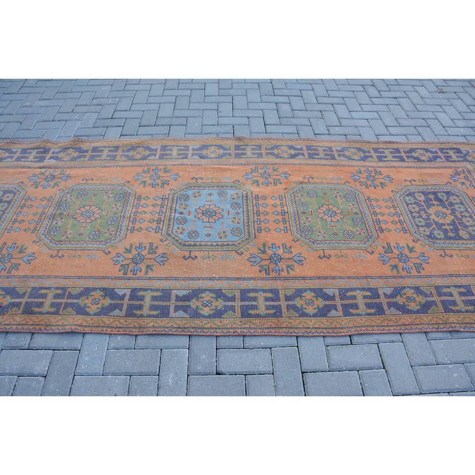 พรมตุรกีสีดำแนววินเทจสีส้มคลาสสิกขนาด4.3x11.4ฟุตงานเย็บปะติดปะต่อกันดีไซน์ขนสัตว์ใยไหมไม้ไผ่ยางสี่เหลี่ยมผืนผ้าห้องโถง