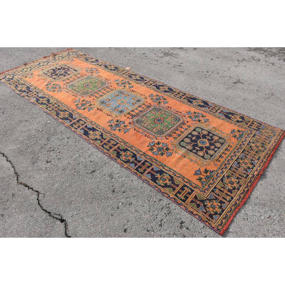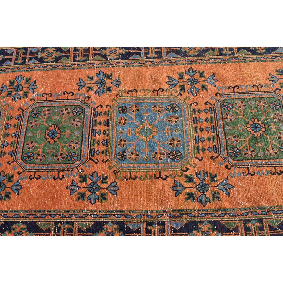 พรมปูพื้นสไตล์ตุรกี4.4ชิ้นแบบงานเย็บปะสุดคลาสสิกสีส้มสีน้ำเงินสำหรับห้องนั่งเล่นพรมทางเดินทรงสี่เหลี่ยมผืนผ้าทำจากยางลาเท็กซ์