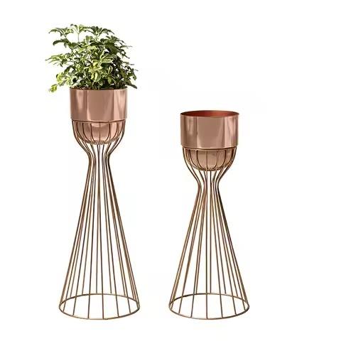 กระถางต้นไม้กลางแจ้งคลาสสิกพร้อมขาตั้งชุบทองมีเอกลักษณ์สำหรับตกแต่งสวนระเบียง