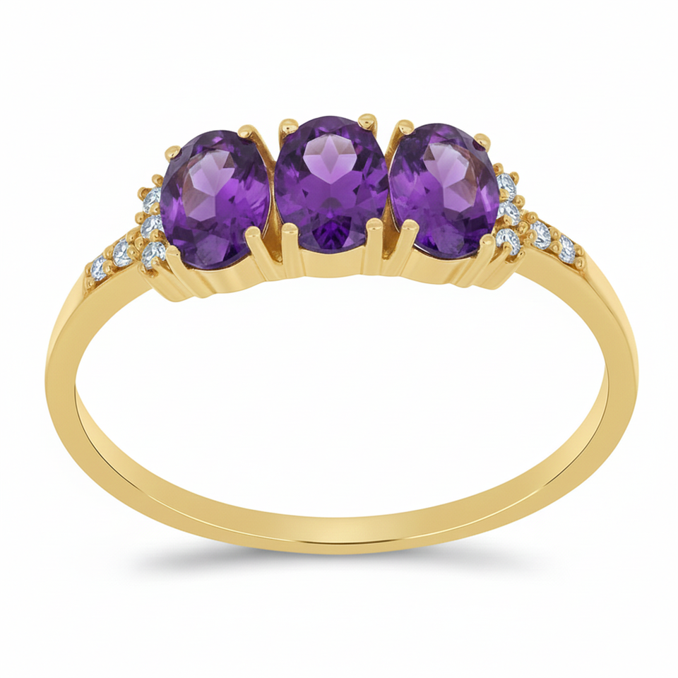 แหวนเพชรรัศมีประดับพลอยอเมทิสต์ประเภทแหวน