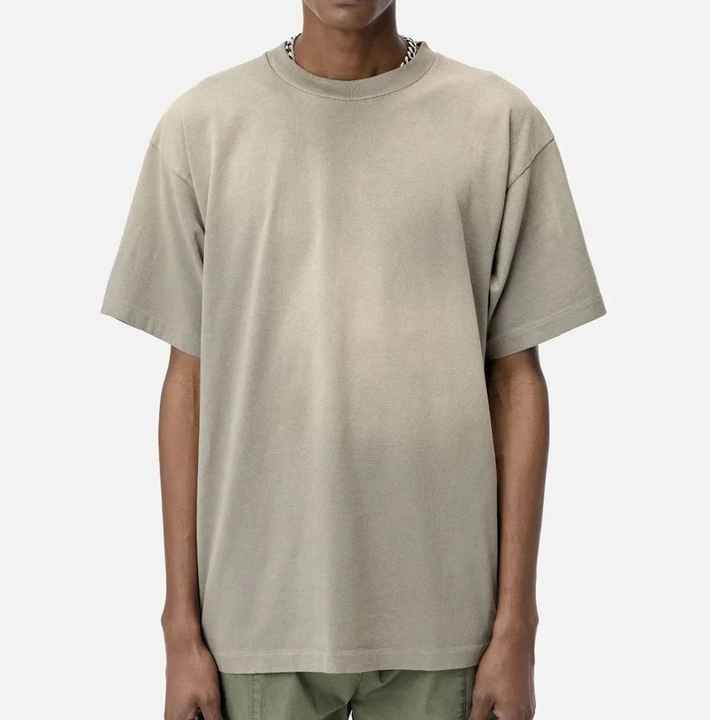 เสื้อยืดผ้าฝ้ายโอเวอร์ไซซ์คลาสสิกพร้อมเอฟเฟกต์แสงแดดซีดลงเทรนด์เครื่องแต่งกายแนวสตรีทสำหรับทุกเพศแฟชั่นฤดูร้อนที่จำเป็น