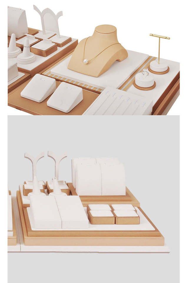 Classic PU Leather Jewelry Display Stands Wholesale Earrings Ring Necklace Jewelry Display Set Luxury Jewelry Display