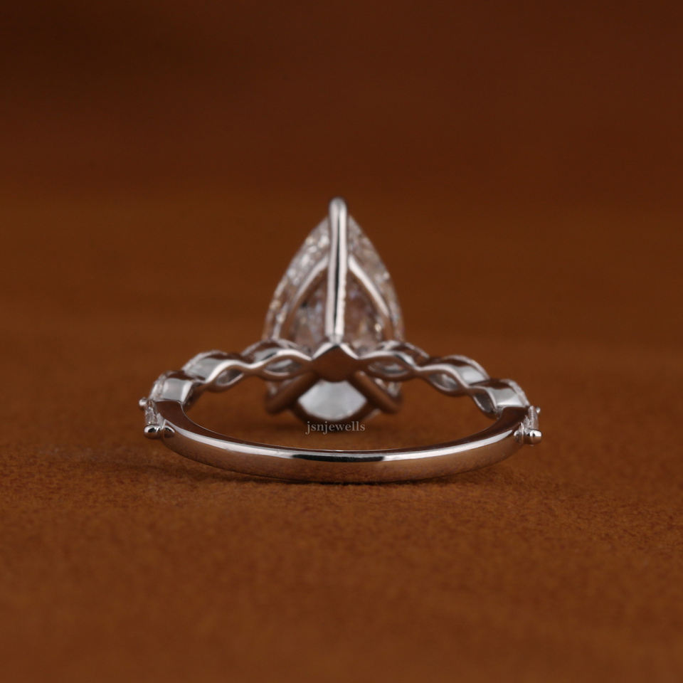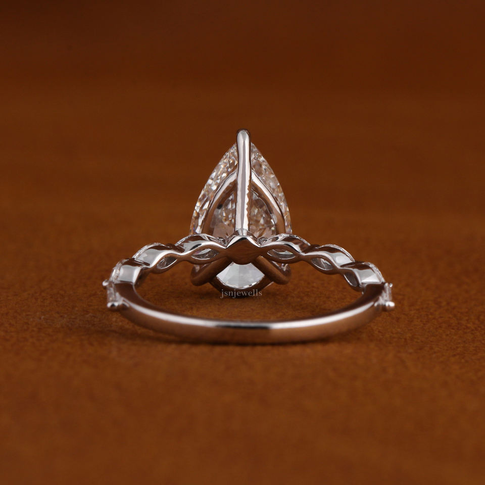 แหวนหมั้นเพชรทรงลูกแพร์คลาสสิก เพชรเลี้ยงในห้องปฏิบัติการ พร้อมเพชรทรงมาร์คีส์ด้านข้าง ทองคำแท้ 14k แหวนแต่งงานสั่งทำพิเศษ ผู้ผลิตเครื่องประดับชั้นดี