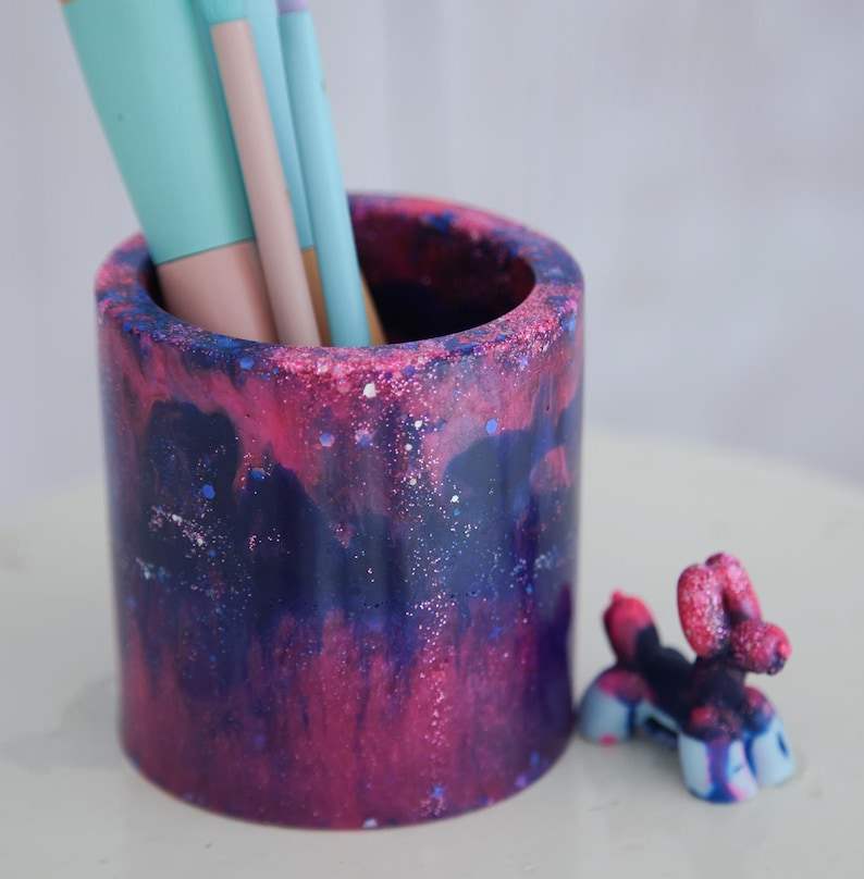ที่ใส่ปากกาแบบคลาสสิกคุณภาพสูงล่าสุดที่ใส่ปากกาเรซินตกแต่งสไตล์ศิลปะที่วางปากกาสำนักงานที่สร้างสรรค์