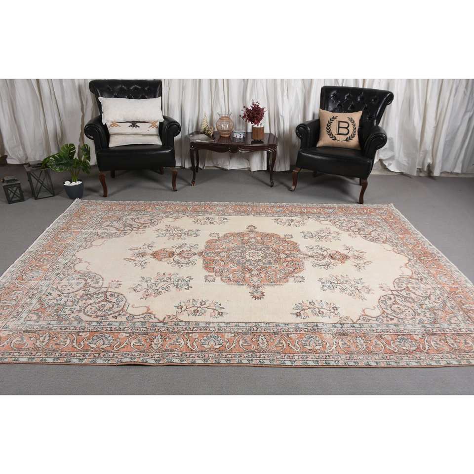 พรมปูข้างเตียงทำจากยาง PP สำหรับห้องโถงสี่เหลี่ยมผืนผ้าพรมขนสัตว์สีน้ำตาลเบจสไตล์ตุรกี6.5x9.8ฟุตคลาสสิก