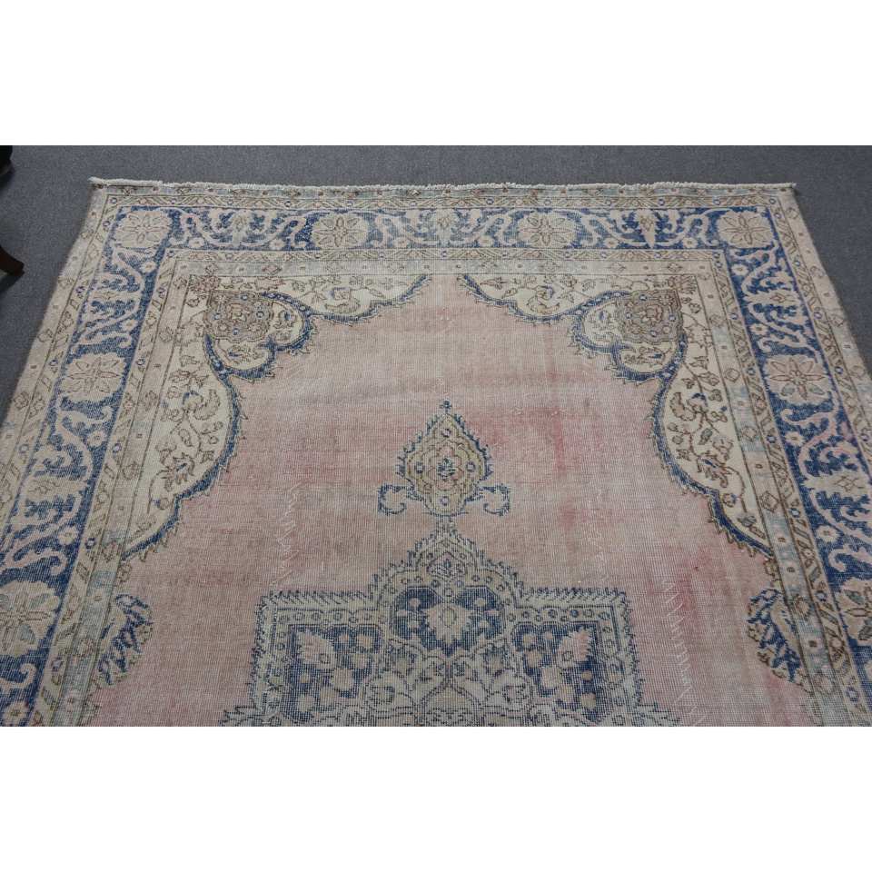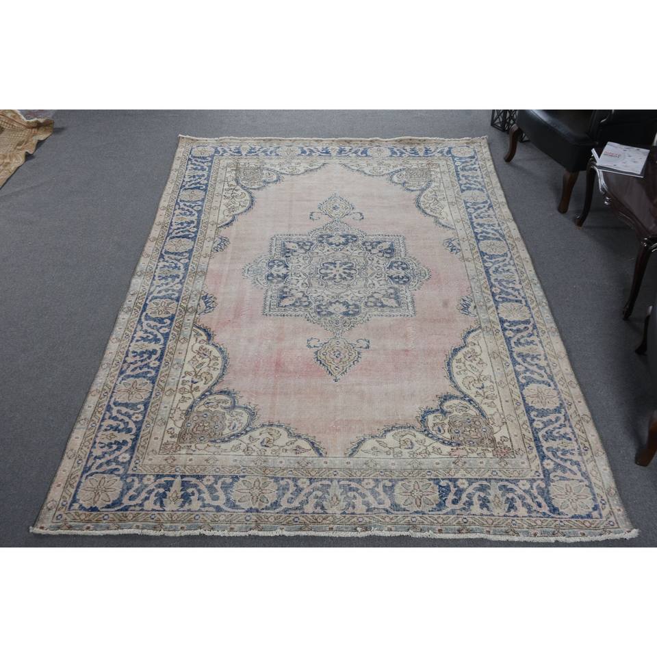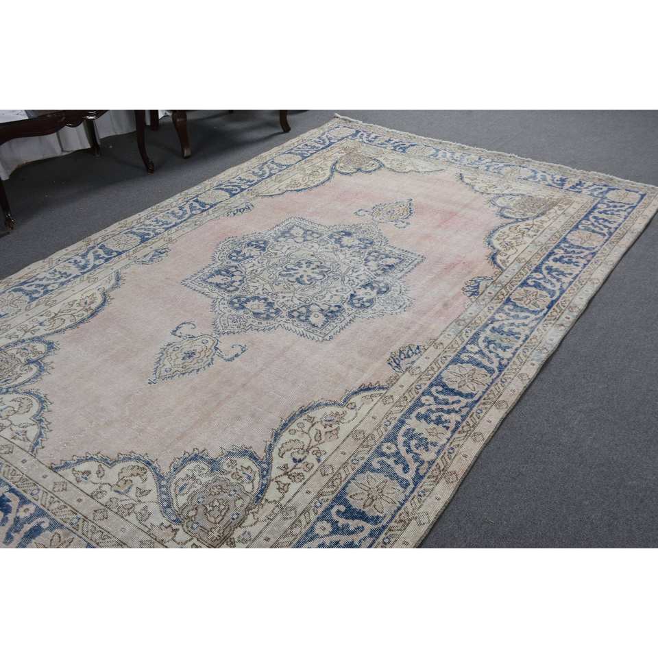 พรมขนแกะสีเบจสีน้ำเงินสไตล์เปอร์เซียขนาด6.6x10.3ฟุตพรมตุรกีแผ่นยางรองหลังสำหรับห้องนั่งเล่นโถงทางเดินขนาด10มม.