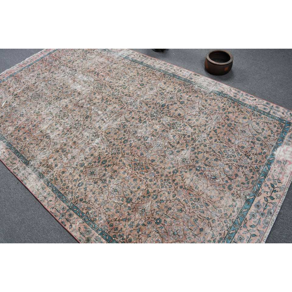 พรมตุรกีขนาด5,3X9ฟุตพรมสีฟ้าสีชมพูคลาสสิก
