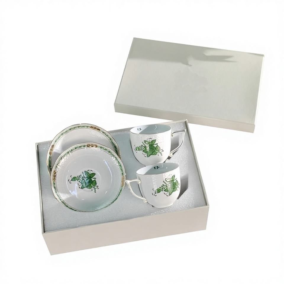 ลายพืชแบบคลาสสิก สีสันสไตล์นอร์ดิก 250 มล. ถ้วยคู่พร้อมจานรอง ทำจากเซรามิกเนื้อกระดูกสไตล์ยุโรป บรรจุในกล่องของขวัญรักษ์โลก