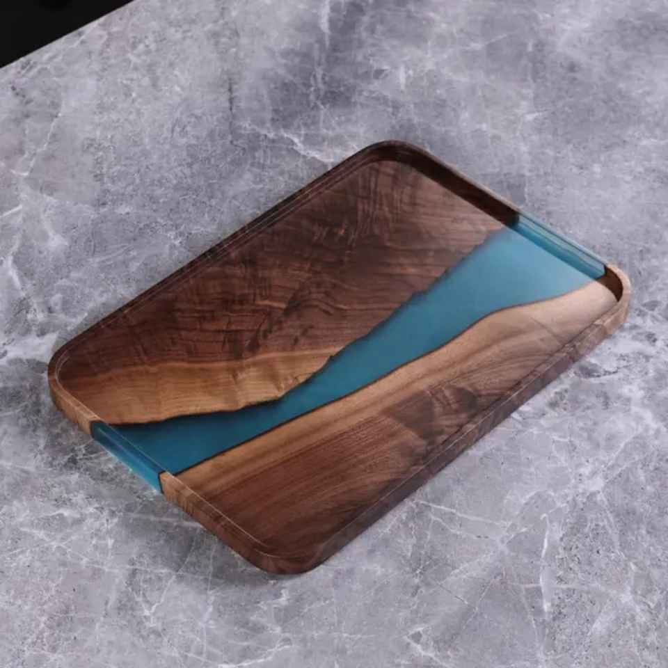 ถาดเสิร์ฟไม้ทรงสี่เหลี่ยมผืนผ้าแบบคลาสสิก หรูหรา ขัดเงา สำหรับงานแต่งงาน ตกแต่งบ้าน ปลอดภัยต่อสิ่งแวดล้อม ใช้กับเครื่องล้างจานได้
