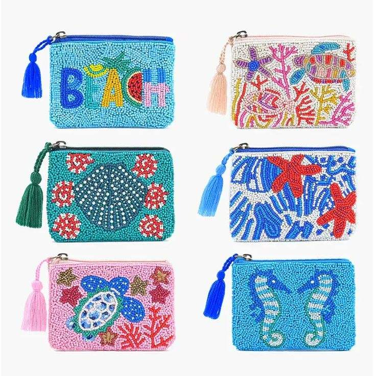 กระเป๋าใส่เหรียญรูปพระจันทร์เสี้ยว ลายการ์ตูน พิมพ์แบบ Letterpress ปักลูกปัดทำมือ พรีเมียม คลาสสิก รูปทรงตามสั่ง หลายสี