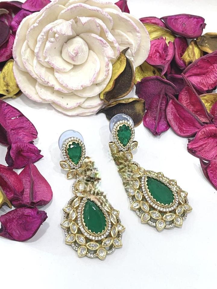 ต่างหูทองเหลืองชุบทองคุณภาพพรีเมียมประดับเพชรซิร์คอนทรงโพลกี้คุนดันแบบยาวสำหรับผู้หญิงและเด็กผู้หญิง คอลเลคชั่นงานปาร์ตี้และงานเทศกาล