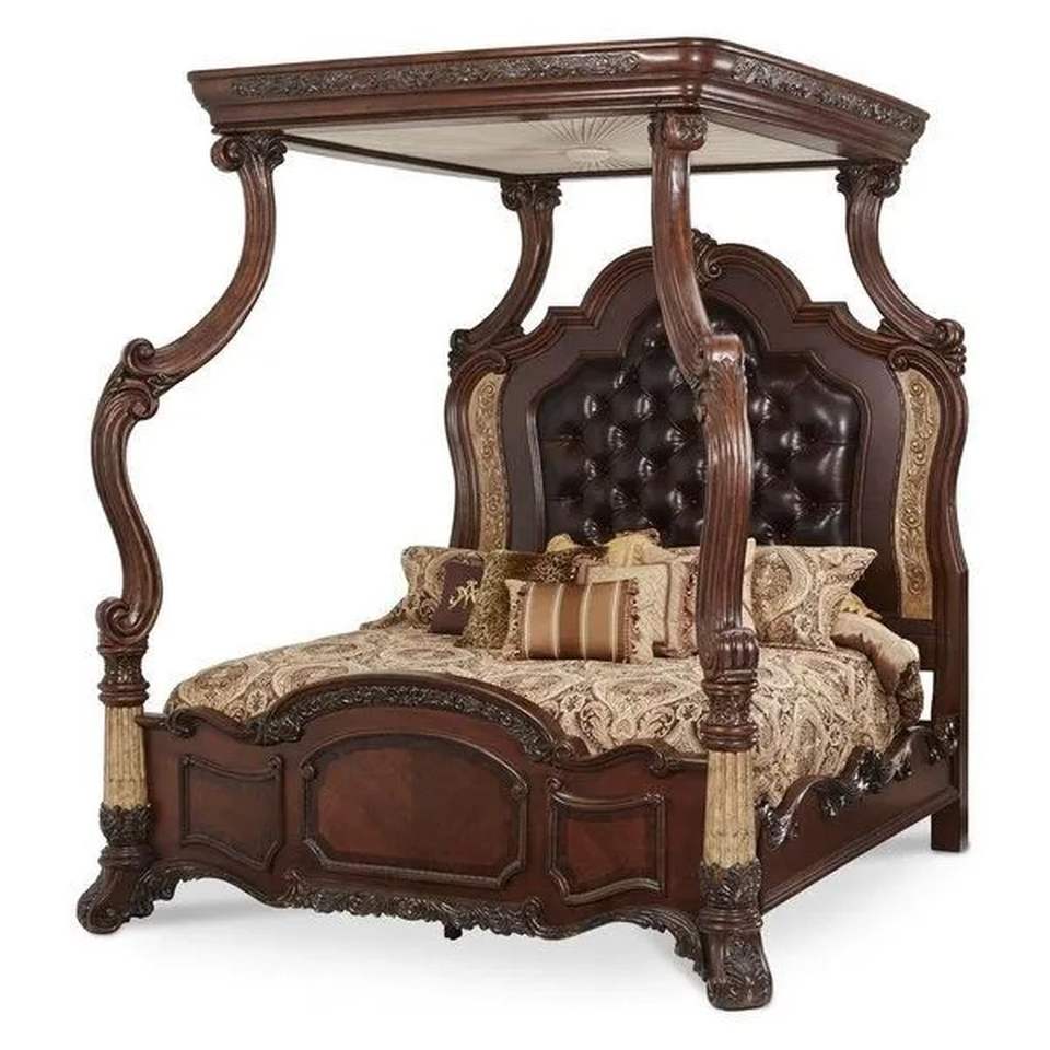 คลาสสิกจังหวัดฝรั่งเศสเตียง-มะฮอกกานีทาสีสีน้ำตาล-278