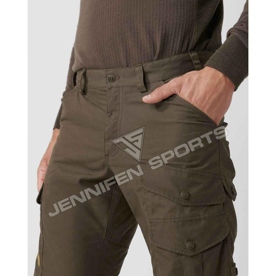 กางเกงล่าสัตว์ผู้ชายคุณภาพคลาสสิก ผ้าแคนวาสคอตตอน 100% ระบายอากาศได้ดี กันลม ปิดด้วยซิปและกระดุมด้านข้างและด้านหลัง