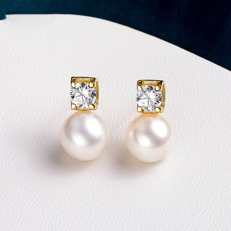 ต่างหูมุกน้ำจืดคลาสสิกของราชินี ดีไซน์หรูหรา ทำจากเงินแท้ 925 ชุบทอง ทรงกลม แสงเงางาม ทันสมัย สำหรับผู้หญิง