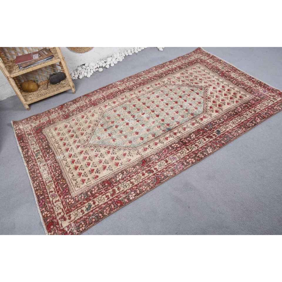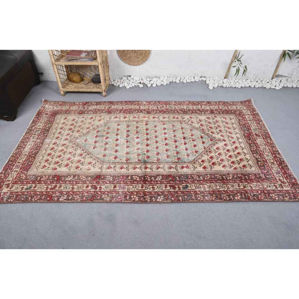 พรมปูพื้นขนาดใหญ่สไตล์ตุรกีสีเบจสีแดงคลาสสิก4.3ft x 7.2ft สไตล์โบฮีเมียนน้ำยางขนสัตว์หนา10มม. สำหรับตกแต่งห้องโถงห้อง