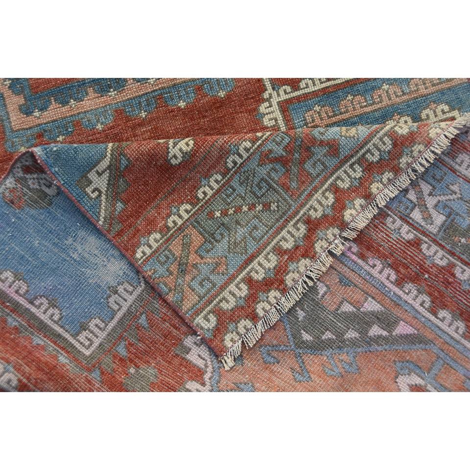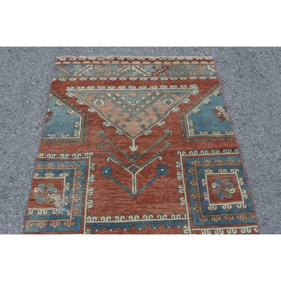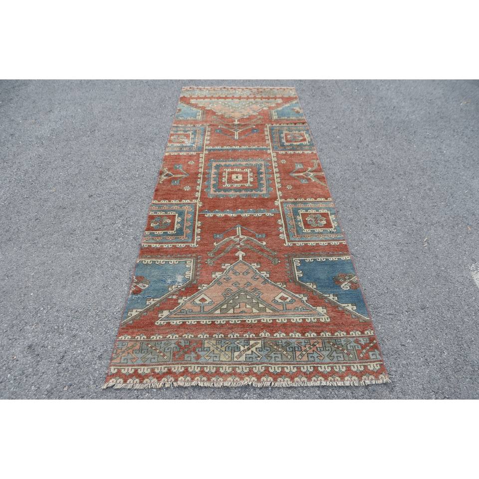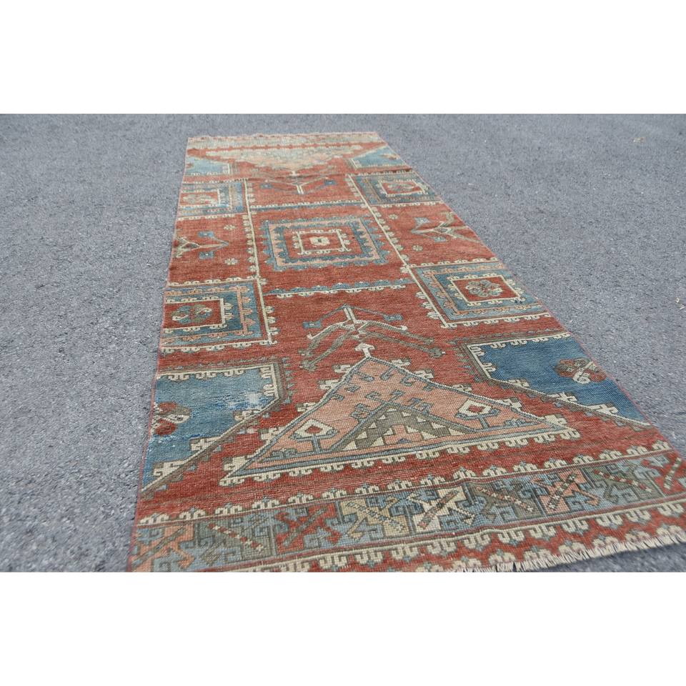 Classic Red Blue Handmade Wool Rug 3.2 X 8.6ft Large Area Turkish Rectangle Area Rug Abstract 10mm Latex for Hallway Room Rug