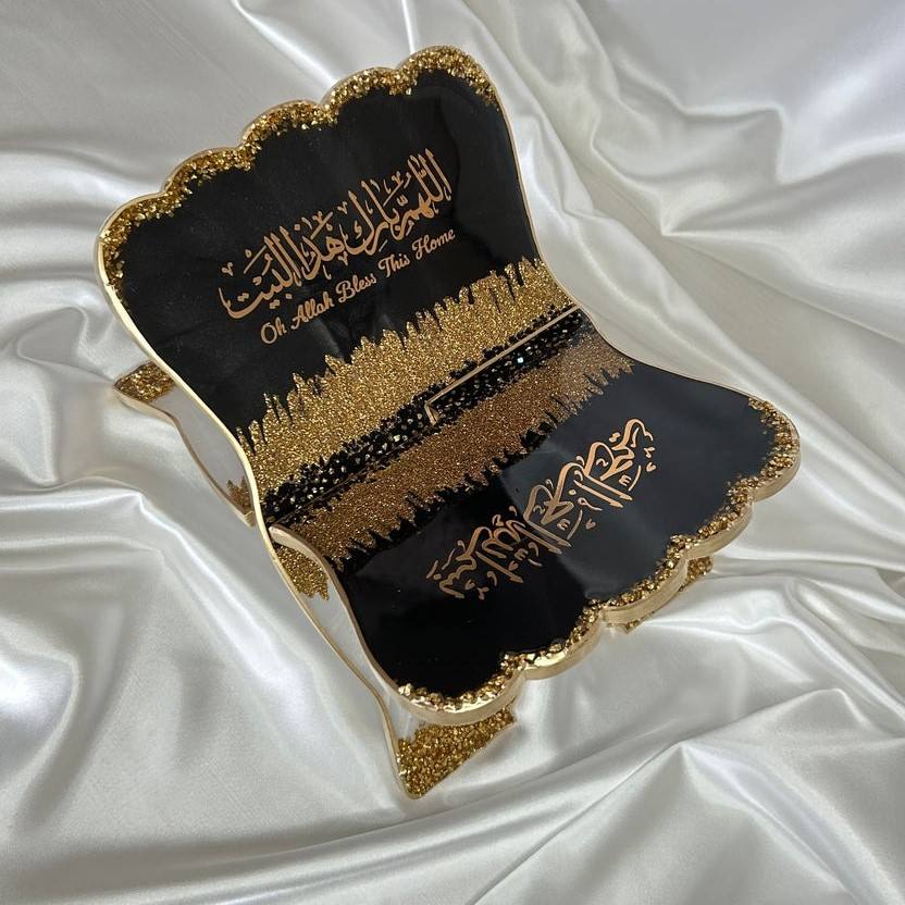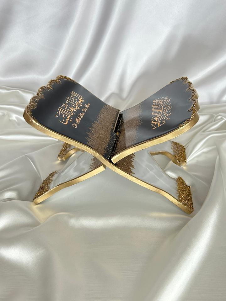 แท่นวางคัมภีร์อัลกุรอานเรซิ่นแบบคลาสสิก ขนาด 12 นิ้ว พับได้ น้ำหนักเบา เคลือบเงา พร้อมสลักชื่อสีตามสั่ง ของที่ระลึกทางศาสนาสำหรับเดือนรอมฎอน
