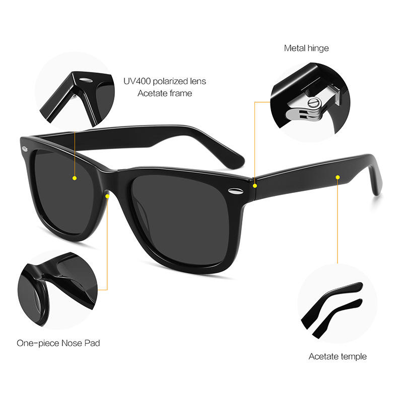 แว่นกันแดดอะซิเตทสไตล์เรโทรคลาสสิกกรอบสีดำเลนส์ TAC ป้องกันรังสียูวี 400 สำหรับทุกเพศสำหรับการขับรถท่องเที่ยวแฟชั่นชุดเดรส