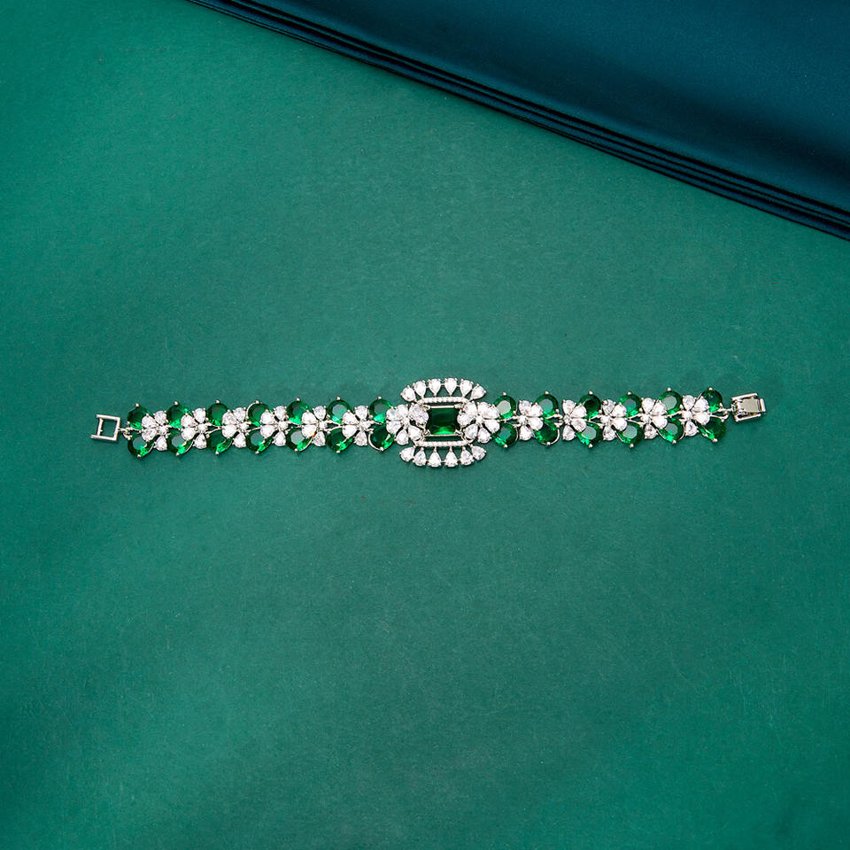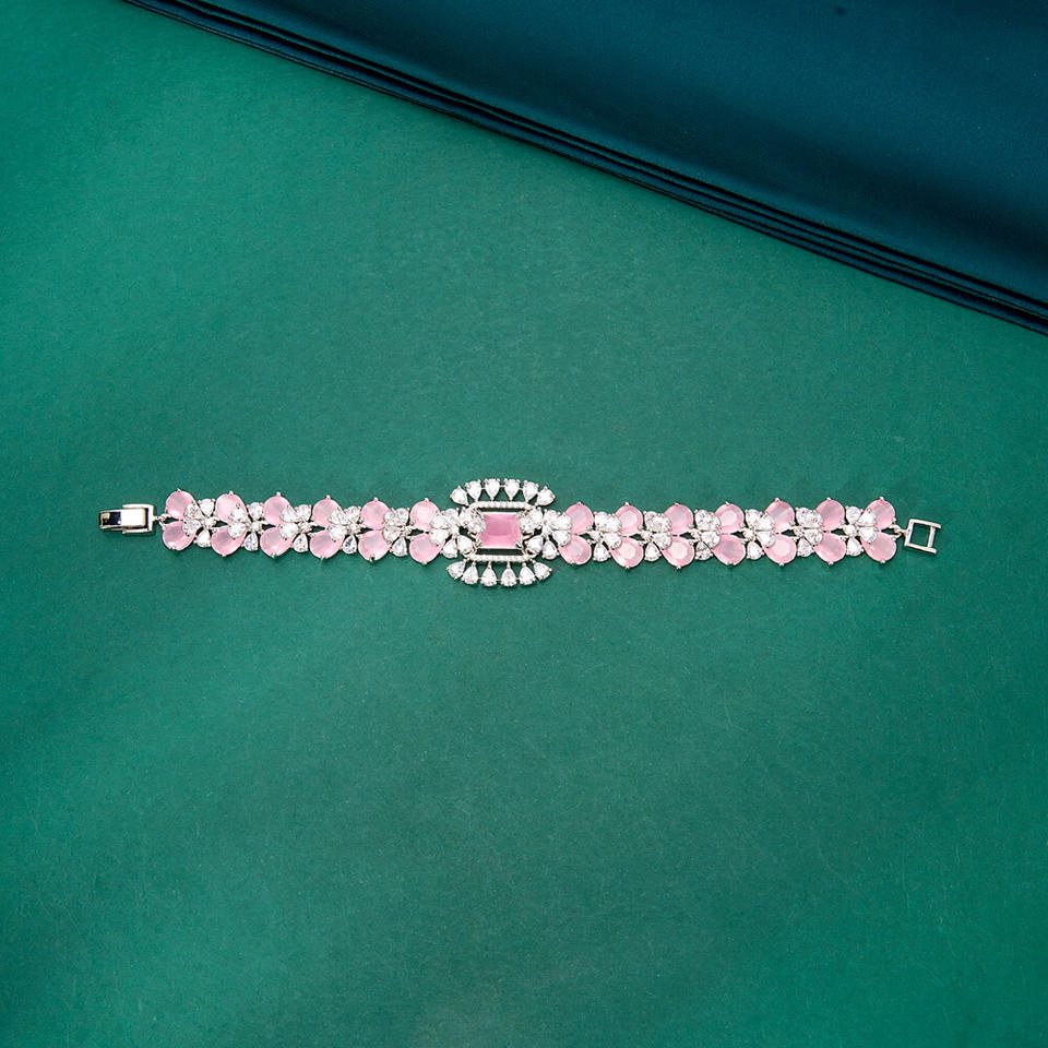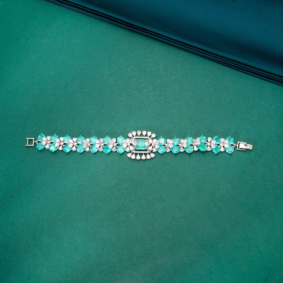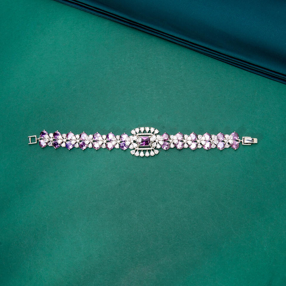 สร้อยข้อมือเซอร์โคเนียชุบโรเดียมคลาสสิกดีไซน์สวยทันสมัยโดยได้รับแรงบันดาลใจจากเพชรจากการออกแบบ