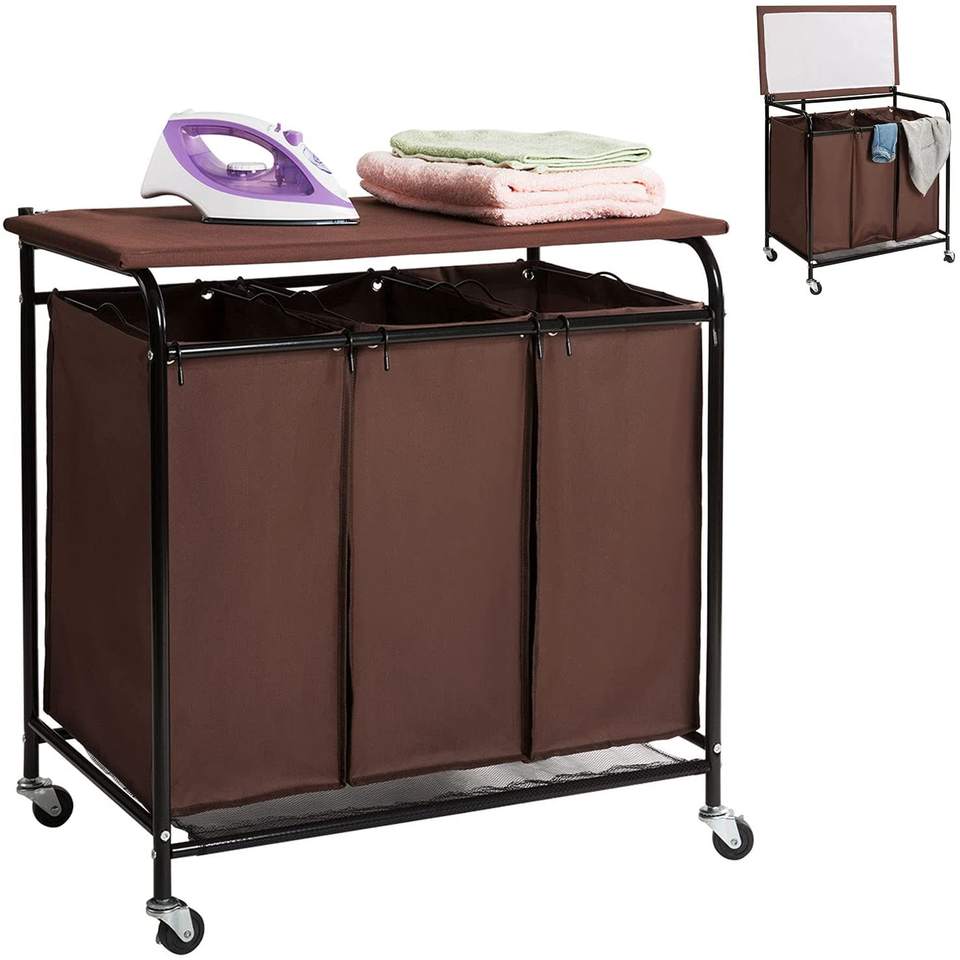 ตะกร้าแยกซักรีดแบบคลาสสิก3ถุงตะกร้าใส่เสื้อผ้าพร้อมแผ่นรองรีด
