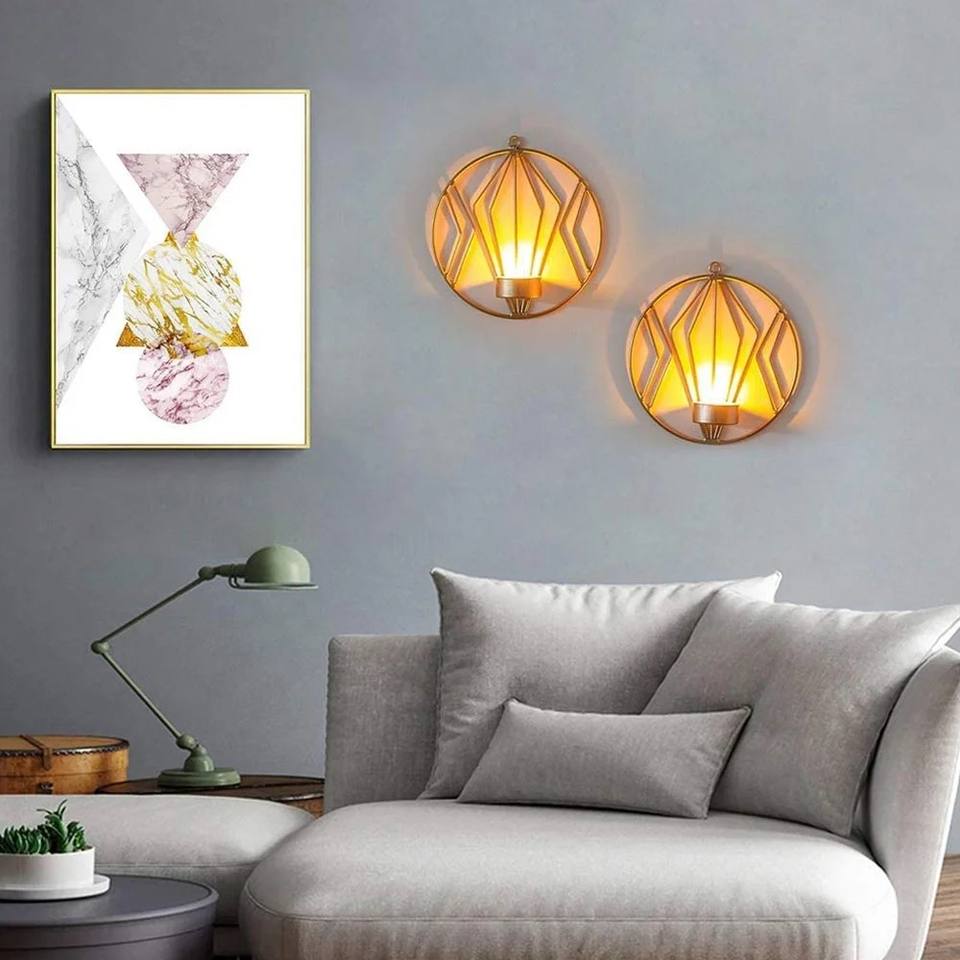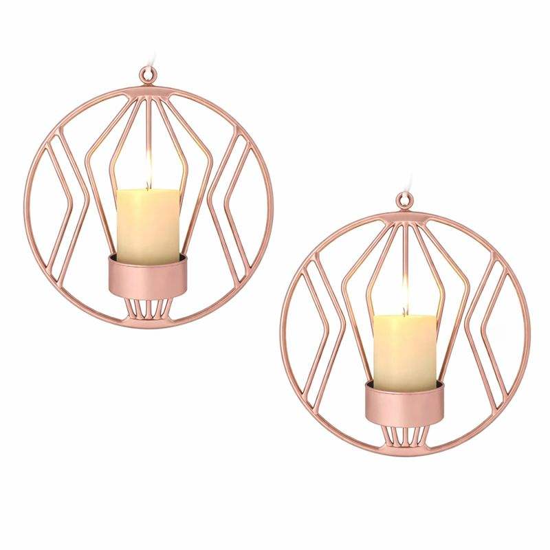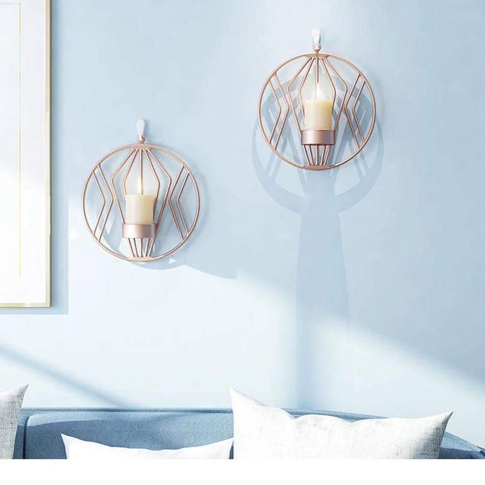 ชุดเชิงเทียนติดผนังโลหะสีโรสโกลด์คลาสสิก ดีไซน์ทรงกลมเรขาคณิต น้ำหนักเบา ให้แสงอบอุ่น ตกแต่งบ้านอย่างหรูหรา