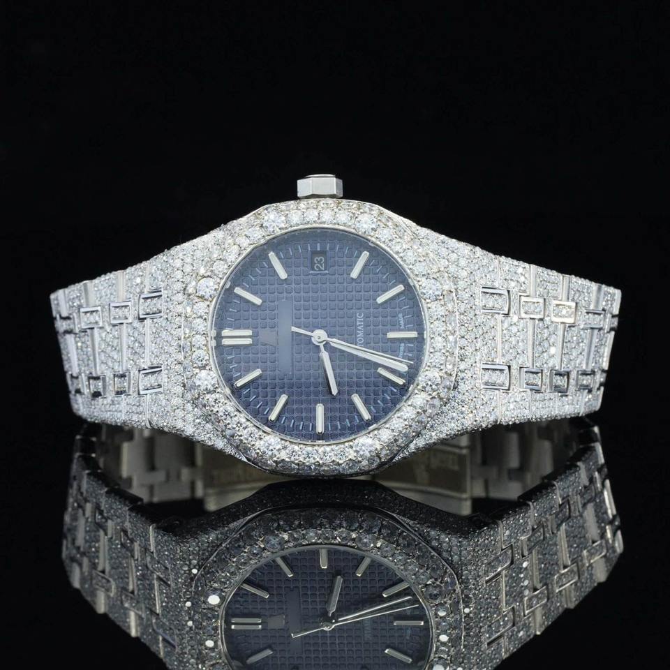 นาฬิกาเพชรทรงกลมคลาสสิก หน้าปัดเพชรเลี้ยงในห้องปฏิบัติการ พร้อมกลไกอัตโนมัติแบบสวิส ดีไซน์ฮิปฮอปแบบ Iced Out ราคาขายส่ง