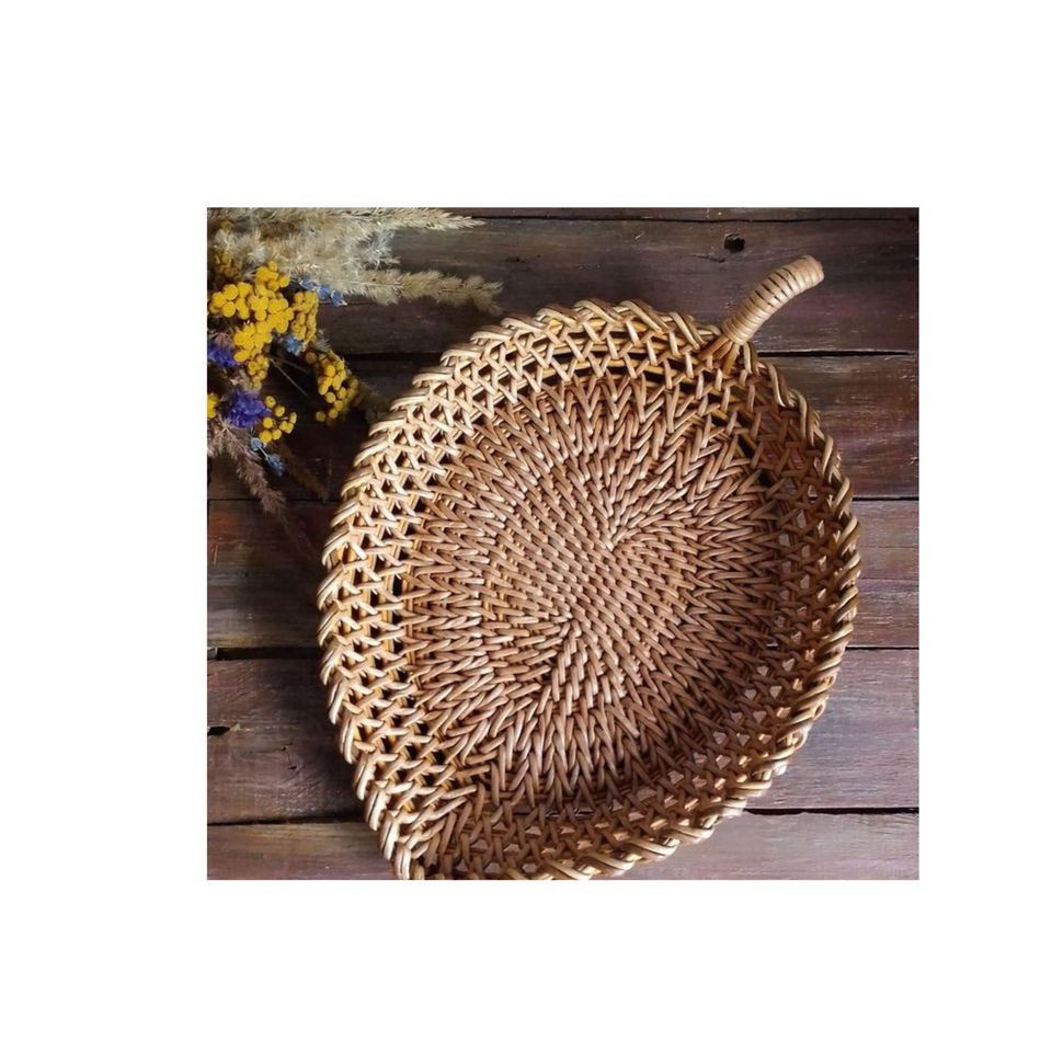 ถาดเสิร์ฟหวายทรงกลมคลาสสิกพร้อมหูหิ้ว - ถาดเสิร์ฟหวายแบบใบไม้ยาง: ดีไซน์ที่นําแรงบันดาลใจจากธรรมชาติ