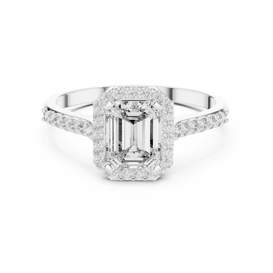 แหวนหมั้นเพชรทรงเอเมอรัลด์ 1.07 กะรัต แบบคลาสสิครอยัลเฟรม ประดับเพชรแล็บโกรว์ด์ทรงฮาโล ชุบโรเดียม สไตล์ฮิปฮอป สำหรับผู้หญิง