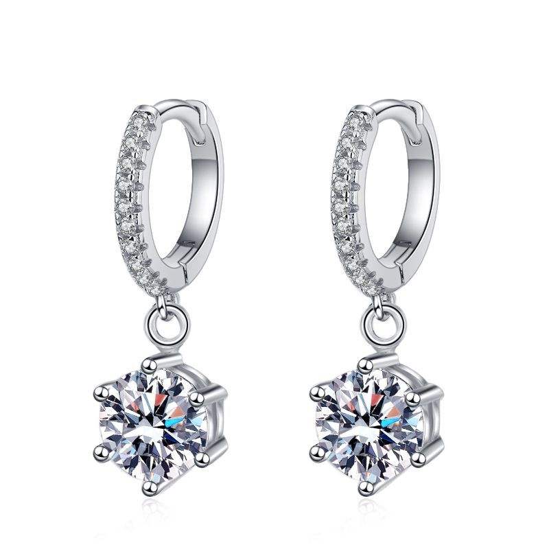 ต่างหูเม็ดเดี่ยวสีเงินแท้ S925คลาสสิกจี้รูปทรงเรขาคณิตแบบ6ง่ามห่วงแฟชั่นสีเข้มสำหรับปาร์ตี้