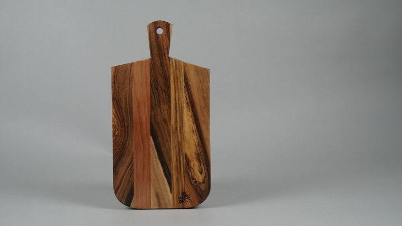แผ่นคลาสสิกครอบคลุมความงามด้วยเขียงไม้ที่ทำด้วยมืออันโดดเด่นทำจากไม้เนื้อแข็งสีเข้ม