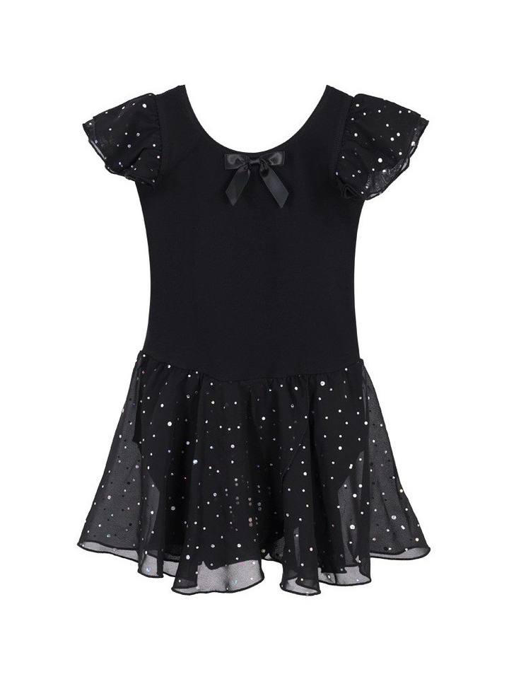 ชุดรัดรูปบัลเล่ต์แขนสั้นคลาสสิกสำหรับเด็กผู้หญิงชุดนักยิมนาสติกและกระโปรงทำจากผ้าฝ้าย