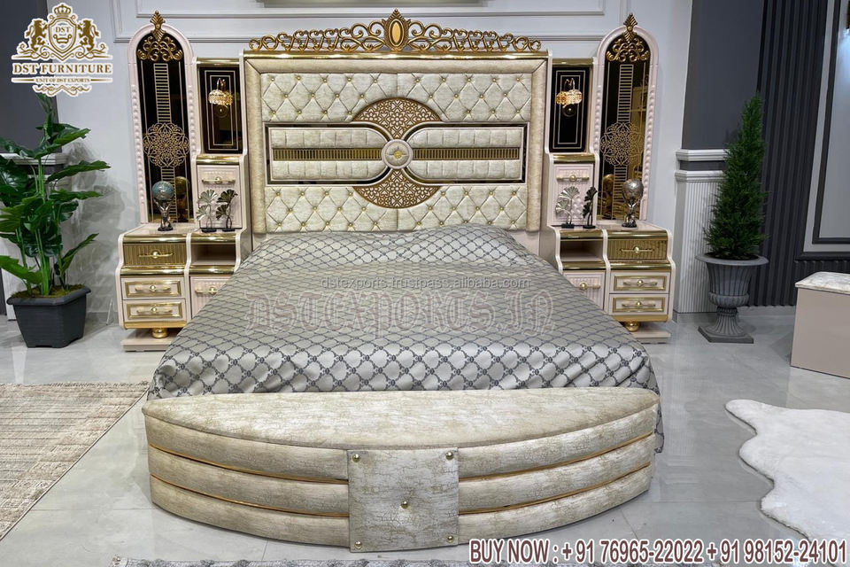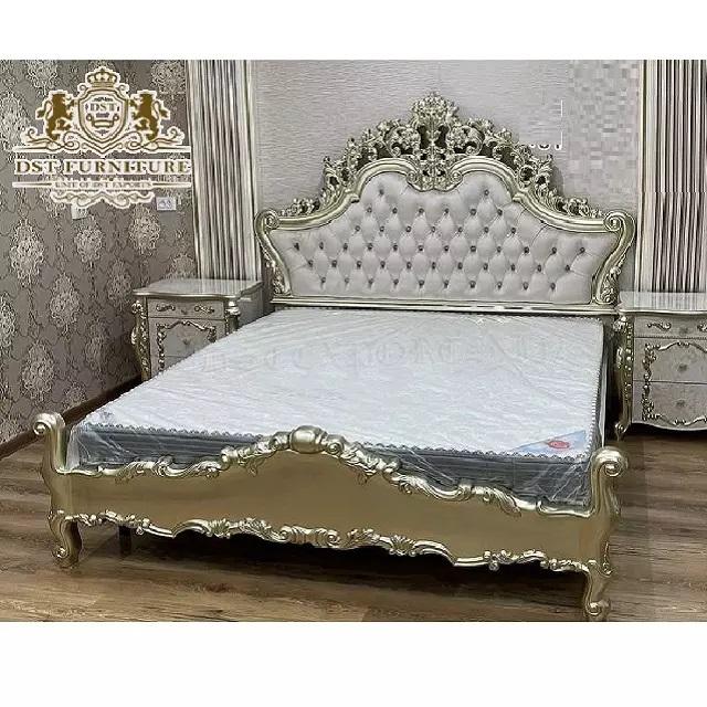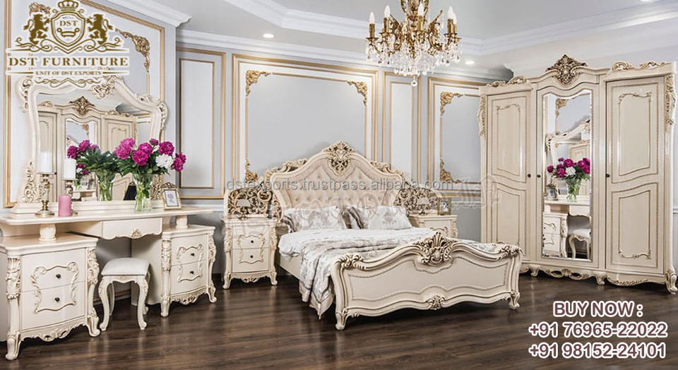 Classic Silver Carved Wooden Bed With NightstandsProduct name