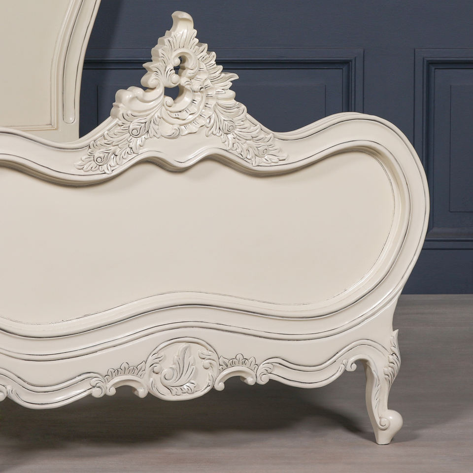 เตียงเดี่ยวสำหรับเด็กแบบคลาสสิก ทำจากโครงไม้มะฮอกกานีเนื้อแข็ง พร้อมลายแกะสลักไม้และเคลือบสีขาว