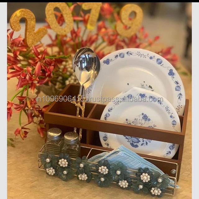 คลาสสิกชั้นจัดบุฟเฟ่ต์ไม้แบบออลอินวันเครื่องใช้และช้อนส้อมพร้อมเกลือและพริกไทยสำหรับห้องนั่งเล่น