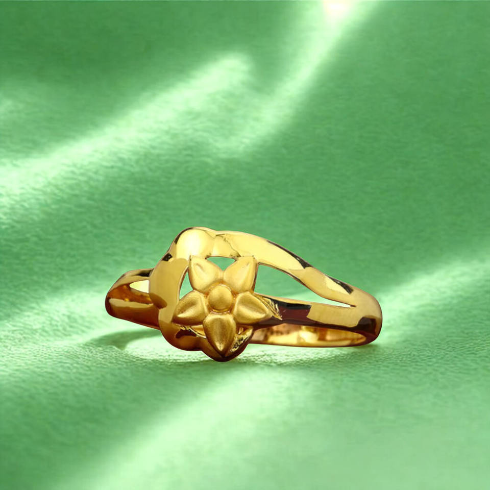 แหวนทองรูปดอกไม้หกกลีบแบบคลาสสิก | ดีไซน์ทันสมัย น้ำหนักเบาเพียง 2 กรัม เหมาะสำหรับสวมใส่ในชีวิตประจำวัน | เครื่องประดับทองคำสีเหลืองสำหรับผู้หญิง