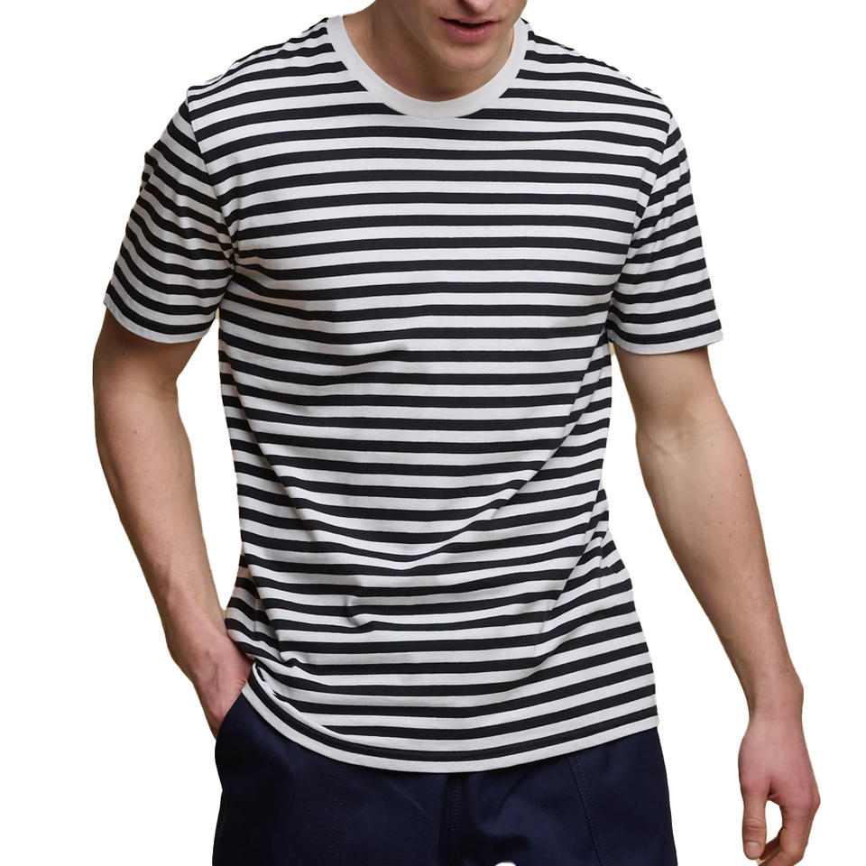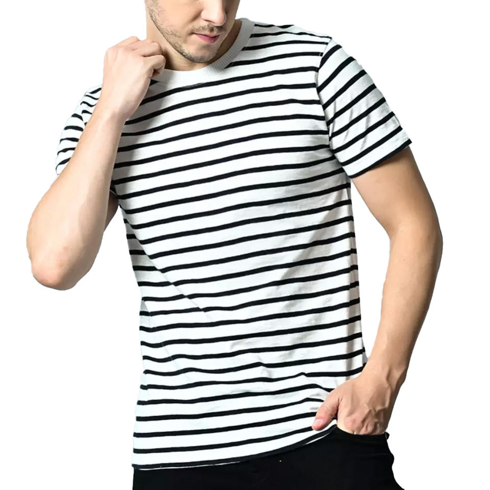เสื้อคอกลมเข้ารูปแบบคลาสสิกมีแถบแนวนอนวัสดุผ้าฝ้ายน้ำหนักเบาเหมาะสำหรับกิจกรรมกลางแจ้งหรือการเดินทาง