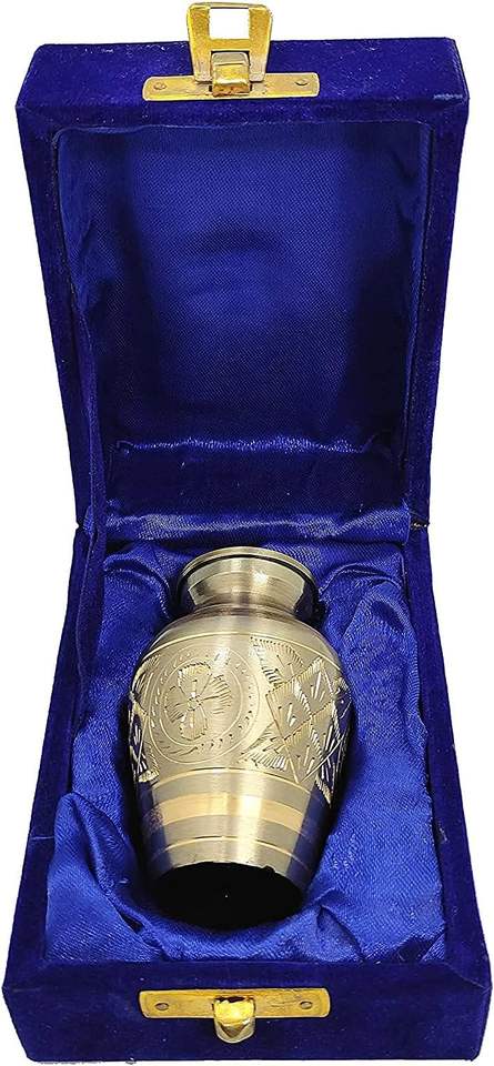 โกศจิตรกรรมเพลิงศพขนาดเล็กคลาสสิกสําหรับเถ้ามนุษย์พร้อมกล่องและกล่องกํามะหยี่ - 2.8 นิ้ว - โรงเก็บของสีเทาน่ารัก