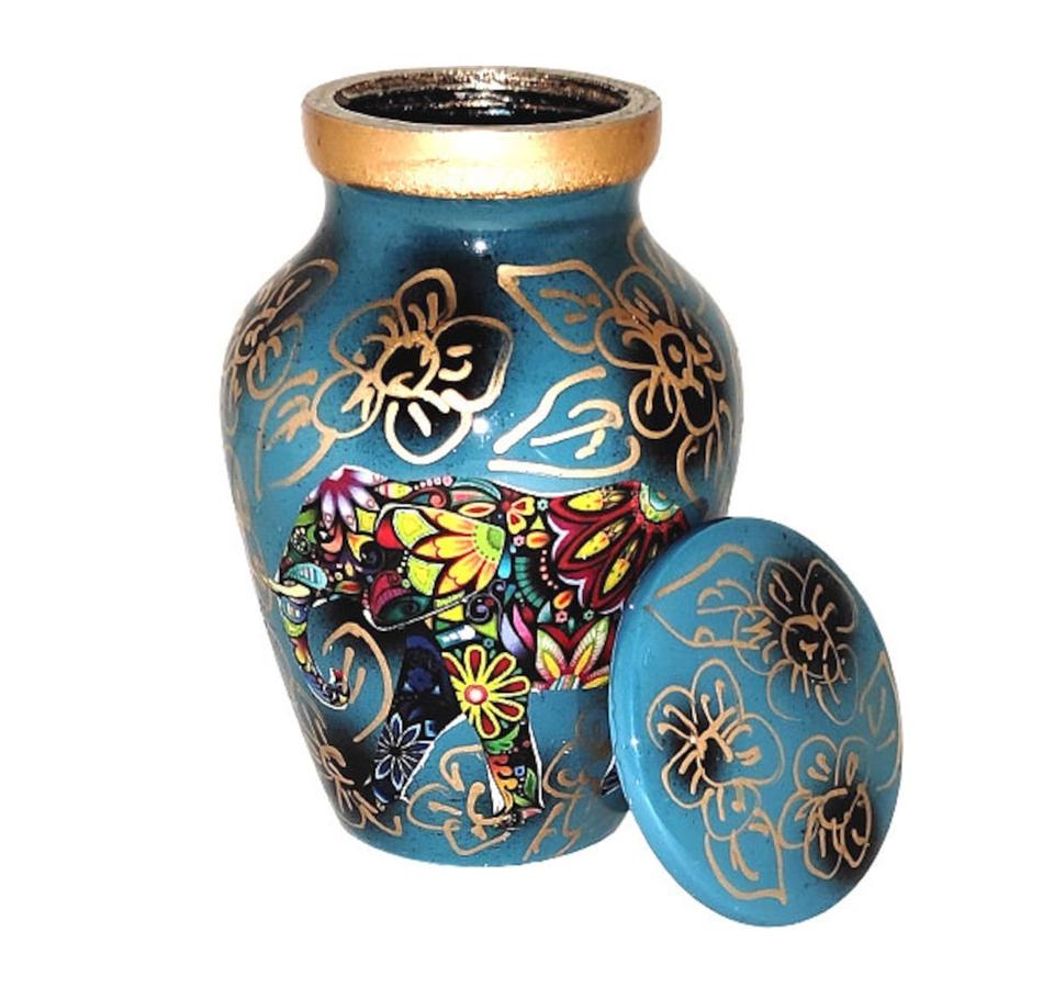 ของที่ระลึกเผาศพขนาดเล็กแบบคลาสสิกสำหรับขี้เถ้ามนุษย์พร้อมกล่องดีไซน์แบบดั้งเดิมรูปช้าง